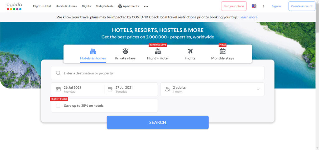 Agoda is a one-stop destination for all travel needs. Travellers from all over the world are booking hotels, flights and activities within a few simple clicks. Renting a home on Agoda is one of the attractive features.