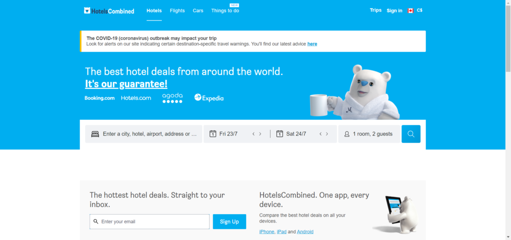 What is the best place to book a hotel at low prices? It’s none other than HotelsCombined. Travellers can compare and book their stay at the cheapest price. Within a single click, travellers can compare all the popular travel websites (Expedia, Hotels.com, Booking.com and more) and find the hotel deal. HotelsCombined is awarded as the best comparison website around the world.