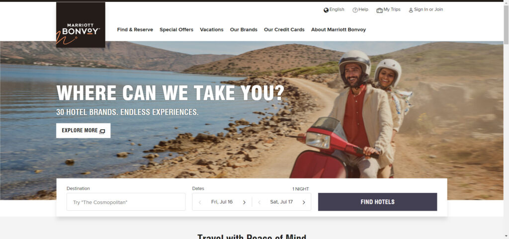 Travel with confidence and peace of mind. Marriott is the leading hotel chain around the world. Travellers can choose from 7000+ hotel rooms across 131 countries. Book your hotel stay within a few simple clicks. Marriott presents with the best price guarantee, easy cancellation and commitment to clean.