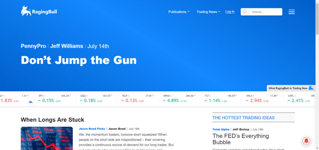 Keep a note, the results may differ from one person to another. Earning money through trading stocks can definitely take time and hard work. Be cautious, there might be risks involved while investing in stocks. Following tricks and strategies while investing in stock can double your earnings. Register to “RagingBull Elite Club” and get expert advice and live training concourses or sessions from top trainers. RagingBull doesn’t display subscription charges, you need to send an email and enquire. Discuss the price and everything with the RagingBull customer support executive. Even without any subscription, you can learn stock trading tips and other information. Visit the RagingBull website and attend free training sessions and learn ideas and strategies.