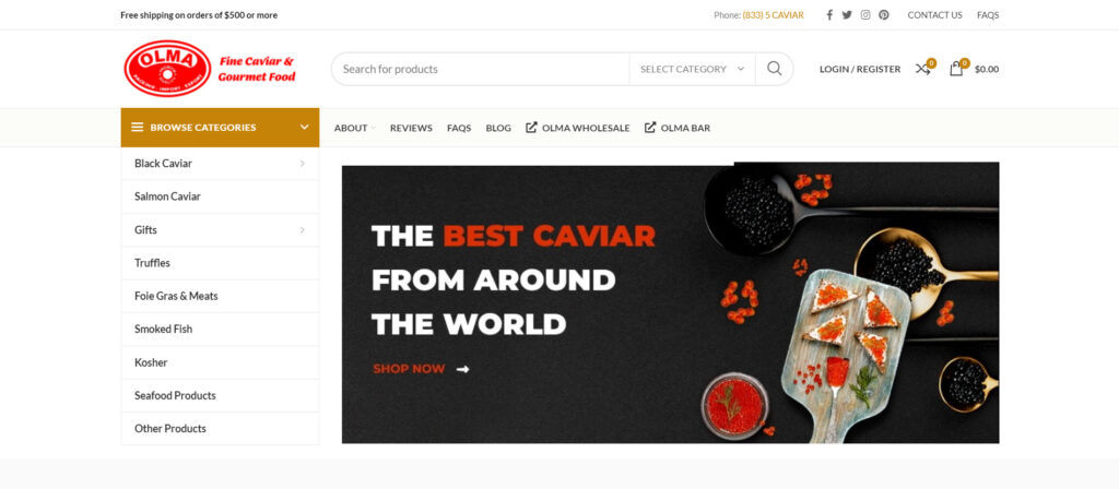 Have you ever heard about the brand name “Olma”? Of Course many times. The brand is the primary producer of fine caviar and gourmet food. Olma imports and exports food around the globe. The brand is passionate about offering and delivering world-class quality products to its customers, restaurants and food distributors over the world. It imports hundreds of varieties of black caviar from popular countries such as Israel, Italy, China, South Korea and more. Olma products meet United States standards. On the other hand, Olma offers gifts, truffles, fish, kosher, seafood products and more. Bulk order processing is an attractive feature of Olma.