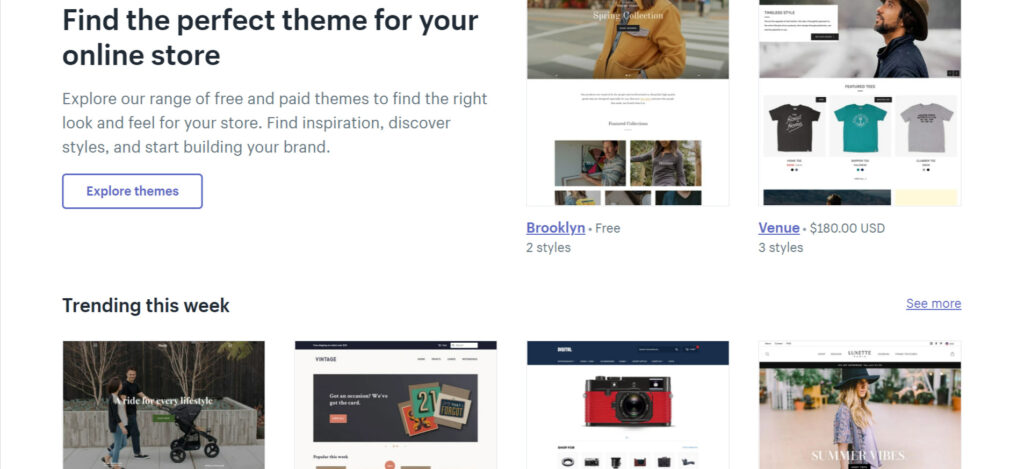 Shopify’s theme store has a collection of more than 70 different templates for e-commerce websites adding up both free and premium templates. The platform offers you 9 free templates with three variations in each, which lets you have different variants of themes to choose from. If they don’t appeal to you you can always buy a paid or premium theme to match your liking.